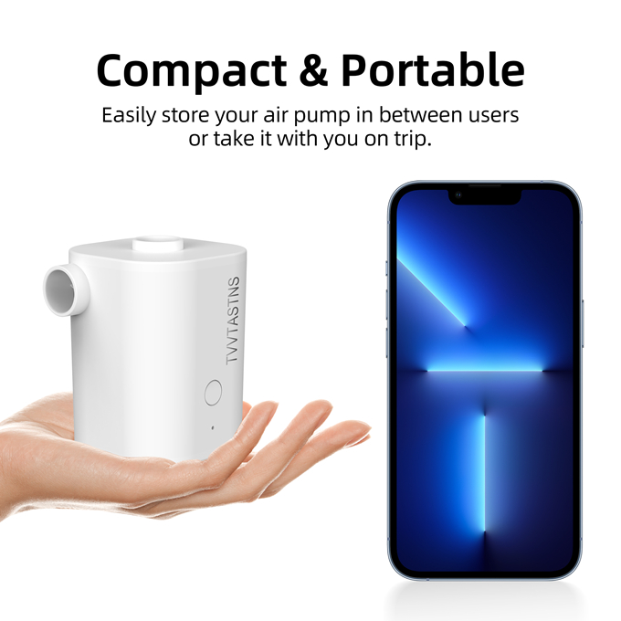 【Portable & Small & Wireless】 The size of the Portable Electric Air Pump is only half the size of a cell phone. The rechargeable electric pump can save storage space ,There is a storage bag in the suit, you can use it to install the air nozzles and USB cable, the mini air pump will only take up a small space, you can take it with you easily. An essential tool for quick and easy inflation / deflation, more effective than most manual pumps on the market.