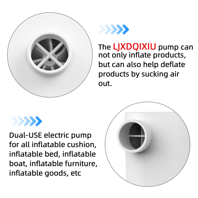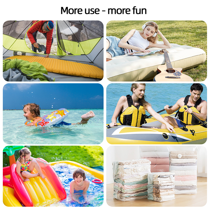 【5 Nozzle Sizes】 The air pump comes with 5 different air nozzles that can be used for air cushions, swimming pools, sofas, water beds, boats, pool toys, swimming rings, etc. Electric air mattress pumps are widely used on beaches, camping, and outdoor meetings.